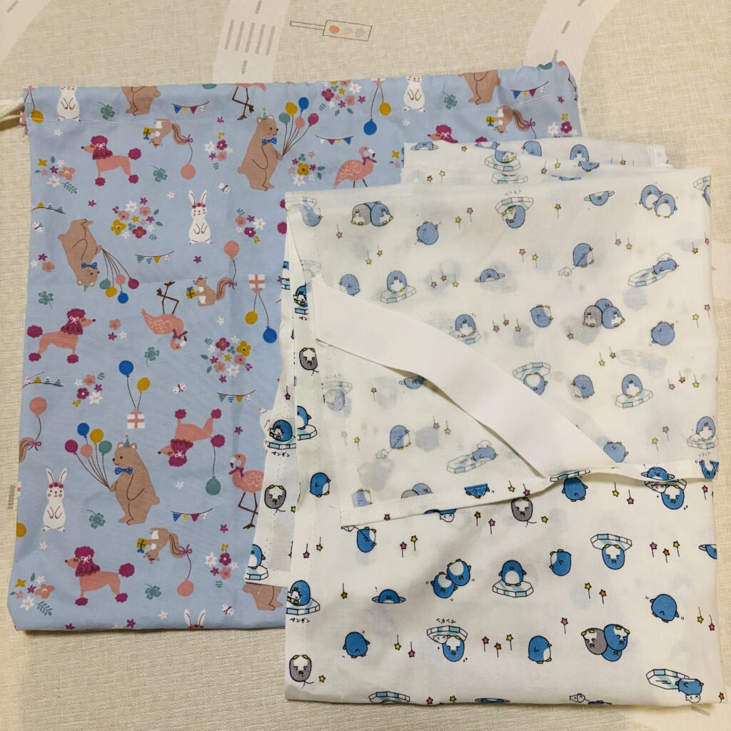 保育園グッズ作りもミシンを引っ張り出しての裁縫は大仕事です。